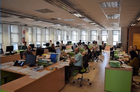 Nella foto sopra, il dipartimento di vendita; in quella sotto, il dipartimento di vendita che si dedica esclusivamente ai prodotti Hispalco's Bio.