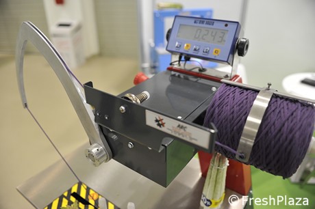 La novità principale è una nuova pesatrice che lega i mazzi con elastico. L'operatore pone gli asparagi sulla pesa, così vede istantaneamente se è giusto oppure se deve aggiungere o togliere dei turioni. Poi procede con la legatura, che avviene in maniera automatica.