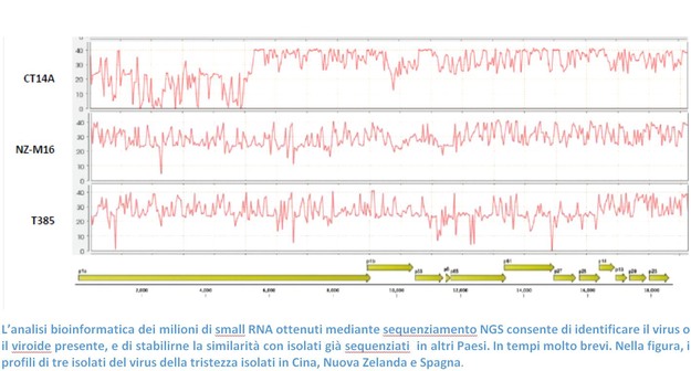 La tecnologia, già sperimentata su larga scala in Nuova Zelanda e Canada per i fruttiferi e la vite, potrebbe in un prossimo futuro "sostituire i saggi biologici di tutti materiali vegetali, che in alcuni casi danno risposte dopo 10-12 mesi (fonte EPPO, vedi FP). Il confronto degli small RNA estratti con i profili genomici di virus e viroidi degli agrumi ha permesso di accertare simultaneamente numerosi virus e viroidi in campioni noti e di campo".