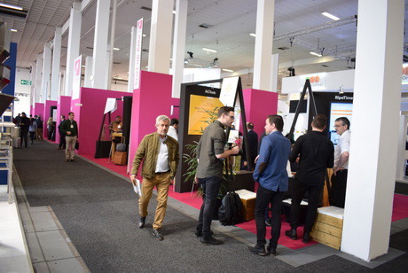 Gli stand delle start-up nella Hall 9 spiccavano grazie al loro colore fucsia.