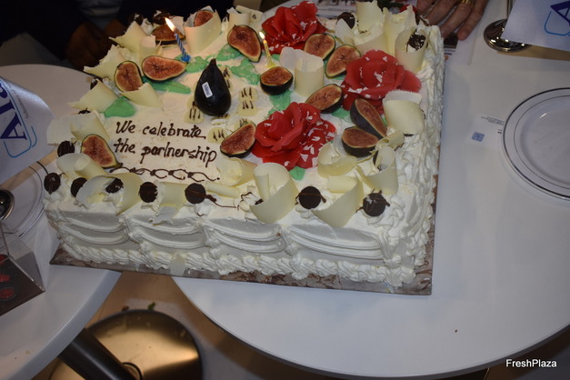 La collaborazione è stata celebrata con una grande torta, decorata con i fichi.