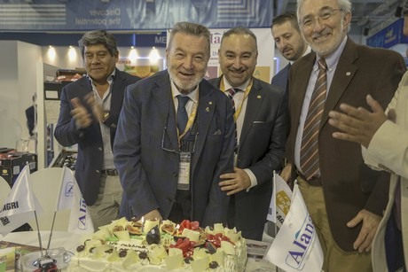 Yavuz Taner, presidente del board di Alanar, mentre taglia la torta.