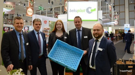 Il team della bekuplast GmbH a Fruit Logistica (da sinistra a destra): Jörg Kampherbeek, Jürgen Schultz, Melissa Zwartscholten, Georld Wilms, Grzergorz Czajkowski.