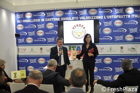 Ernesto Fornari e Alessandra Ravaioli durante la presentazione a Berlino, Fruit Logistica 2019