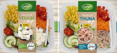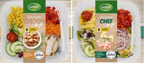 Le insalate vengono preparate fresche ogni giorno nell'impianto di produzione di Sapros a Ilsfeld. Secondo il direttore marketing Bjoern Berger, gli altri vantaggi offerti dalla linea di prodotti sono una shelf life lunga e l'attraente design dell'imballaggio di alta qualità, completato da una fascia di carta riciclata.