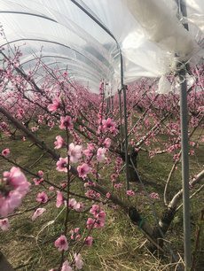 In foto qui sopra: pesche Saturnia sotto serra, con maturazione attesa nelle Marche al 15/20 maggio.