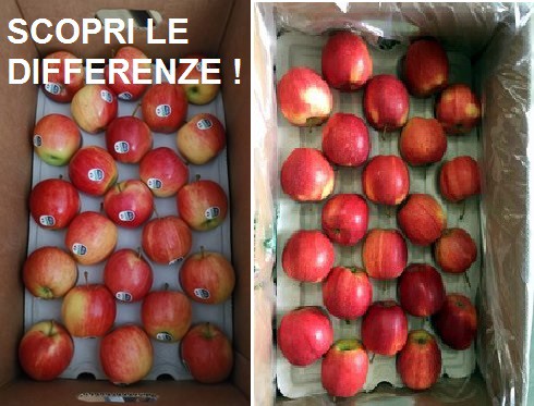 Mele Gala Italia (a sinistra); mele Gala Polonia ( a destra): differenza = 25 centesimi al kg.