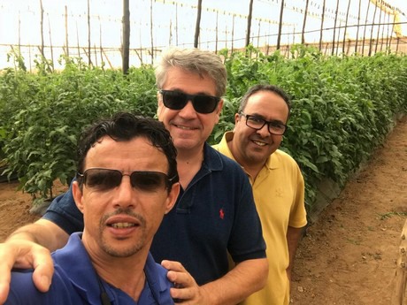 Patrick Brun (al centro) con il direttore di Anteus Maroc (in primo piano) e il loro agronomo (dietro).