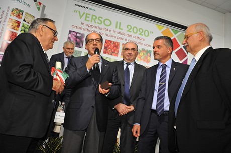 Paolo De Castro, secondo da sinistra, riceve il Premio Macfrut il 27/09/2013 (cfr. Freshplaza del 30/09/2013)