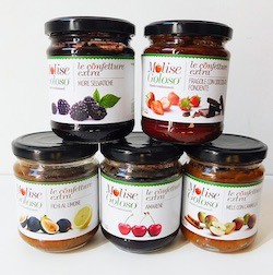 La linea dolce si completa con le Confetture Extra di frutta nei gusti: more selvatiche di rovo, amarena, mela e cannella, fragola e cioccolato, pesca e amaretti. Particolarmente indicata per accompagnare i formaggi, la Confettura di pomodoro verde di Montagano disponibile in vasetto da 200 gr.