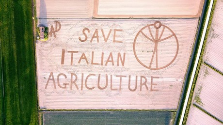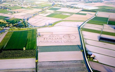 L'ultima performance di land art di Gambarin, originario di Castagnaro (VR) è stata dedicata al movimento "Salviamo l'agricoltura italiana!", presentato per la prima volta su FreshPlaza lo scorso 6 marzo (rileggi il primo appello).