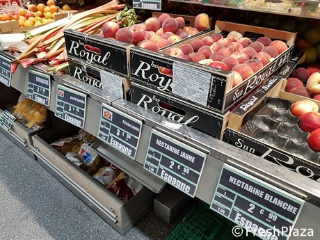 Le nettarine a pasta gialla o bianca, spagnole, erano in vendita a 2,99 euro/kg in libero servizio, mentre le pesche, sia bianche che gialle, erano a 3,99 euro/kg.