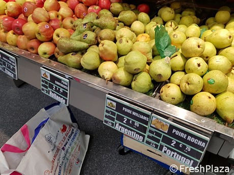 Pur cercando accuratamente, non è emerso nessun prodotto di origine italiana. L'unica speranza era per kiwi o mele, ma entrambi erano di origine francese. Circa le pere, ci si sarebbe potuti aspettare una minima presenza di prodotto proveniente dall'Italia, ma non vi erano frutti di Abate.