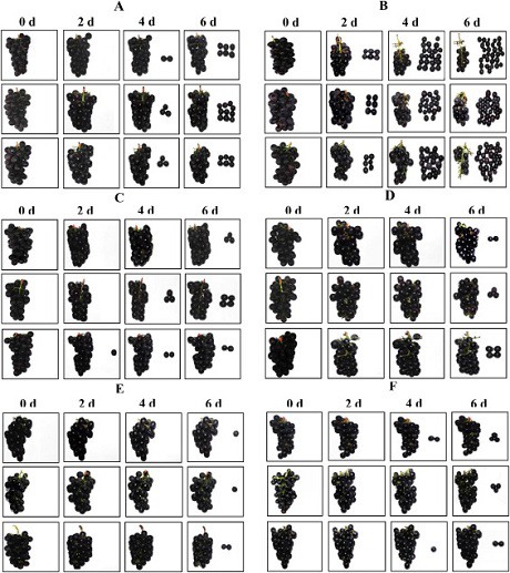 I risultati hanno mostrato che sia il rivestimento con l'1,5% di chitosano sia quello con l'1,0% di ε-polilisina hanno inibito notevolmente il distacco degli acini dal grappolo Kyoho, e i tassi di abscissione di entrambi i gruppi trattati erano significativamente inferiori anche rispetto al controllo non trattato (cioè senza SO2 trattamento) dopo 6 giorni di conservazione.