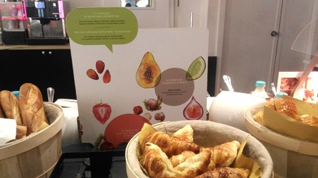 In occasione di un recente viaggio a Roma, un particolare del grande tavolo apparecchiato per la colazione a buffet in un hotel della catena Mercure cattura la mia attenzione: una serie di barattoli in vetro contenenti frutta secca e semi sono disposti in bell'ordine in un espositore in cartotecnica.