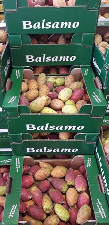 "I nostri fichi d'india ci arrivano direttamente da una nota azienda siciliana di San Cono (Catania), il maggior centro produttivo per questo frutto, in comodissime cassettine di cartone da 30x40 cm, nelle quali il prodotto viene messo in risalto, grazie anche al giusto stadio di maturazione in cui arriva nel nostro stabilimento pugliese. Da 3 anni ormai commercializziamo questo delizioso prodotto, del quale tutti i nostri clienti non possono più fare a meno".