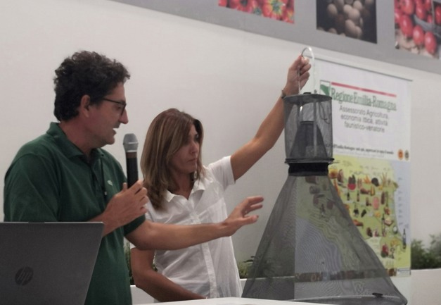 "Per quanto i Bollettini di Produzione Integrata possano fornire delle informazioni su base territoriale circa lo sviluppo dei principali insetti dannosi – ha esordito Bariselli - è importante abbinare a queste indicazioni delle osservazioni puntuali eseguite in azienda. L'uso delle trappole a feromoni per il monitoraggio permette una valutazione quantitativa degli insetti di una determinata specie dannosa presenti in ogni azienda agricola e permette di orientare la difesa nel modo più corretto".