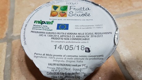 Ci sono giunte diverse segnalazioni di perplessità da parte di genitori, secondo i quali la purea di mele non è gradita dalla maggioranza dei bambini. La foto ci è stata inviata da un collega giornalista, padre di un bambino che rientra nel progetto