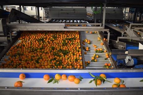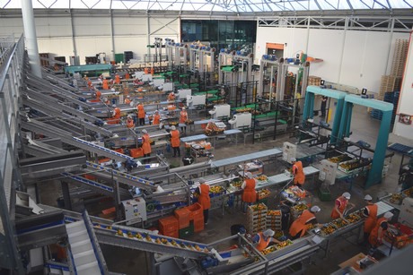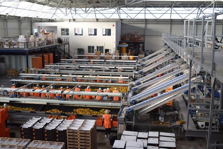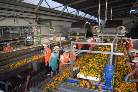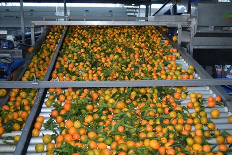 Durante la visita di FreshPlaza allo stabilimento, quasi 15 tonnellate di mandarini con foglia sono passati attraverso la linea in un'ora. "Se si entra nella tecnica, la selezione dei mandarini è una vera sfida. Le foglie causano danni considerevoli. Il trucco è anche quello di mettere gli agrumi giusti nella giusta linea sulla macchina", ha continuato Lionel.