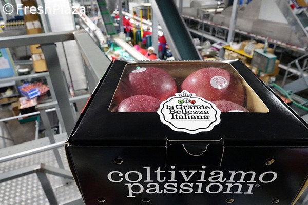 Abbiamo visitato lo stabilimento Sanifrutta (a Costigliole Saluzzo, in provincia di Cuneo) il 15 novembre 2019 quando, poche ore prima, era nevicato in buona parte della provincia. "I nostri impianti – ha precisato Alex Tallone, tecnico della cooperativa – sono per lo più dislocati fra 400 e 800 metri di altitudine. Lavoriamo le diverse varietà in un unico stabilimento, iper-specializzato, ed è qui che confezioniamo anche con il brand La Grande Bellezza Italiana".