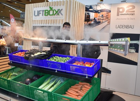 L'anno scorso, la p2raumdesign ha vinto l'Innovation Award all'expoSE / ExpoDirekt, con il nuovissimo LiftBoXX. Esattamente un anno dopo, Rainer Palinkasch è tornato a Karlsruhe e ha presentato al pubblico specializzato un nuovo concept di punto vendita innovativo per i prodotti agricoli. In collaborazione con la società RFT, specializzata in refrigerazione e raffreddamento, ha integrato un sistema ultrasonico di nebulizzazione a freddo in quello della vendita di frutta e verdura.