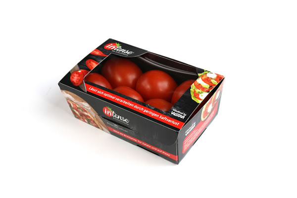 Valstar ha sviluppato un nuovo imballaggio per evidenziare meglio le caratteristiche del pomodoro Intense. Sul mercato tedesco, sotto il logo è stato aggiunto "die Schnittfeste" per enfatizzare la consistenza soda del pomodoro. Inoltre, sull'imballaggio si possono trovare gli impieghi d'uso per questo prodotto e anche una ricetta per la preparazione della pizza e di un panino.