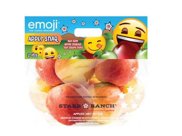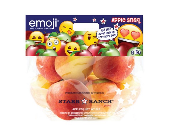 Grazie all'accordo raggiunto tra la società emoji® company e il suo agente di licenze nord-americano Retail Monster, da quest'estate le emoji compariranno sui sacchetti stand-up 'apple snaq' di molte varietà di mele come Gala, Honeycrisp e Fuji.