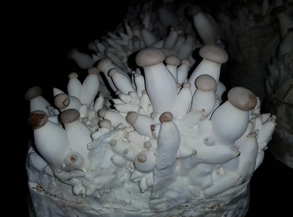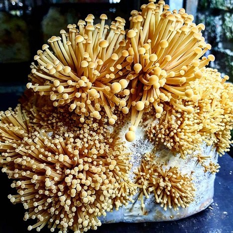 Enoki o "Golden Needle Mushroom" circa 2 giorni prima della raccolta