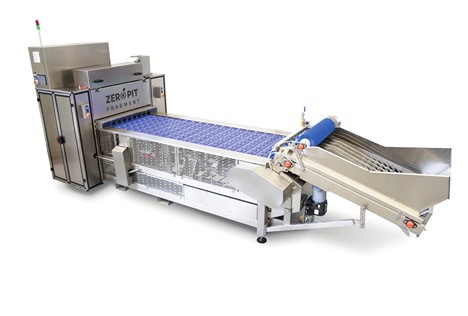 Sopra: Zero Pit Fragment, la prima denocciolatrice al mondo che denocciola prima di separare il frutto