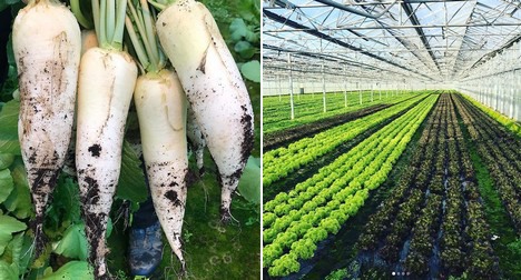 A sinistra: i primi ravanelli della stagione sono ora forniti all'ingrosso al prezzo unitario di 1,60 euro. Si prevede che, tra circa due settimane, l'ortaggio da serra arriverà per la prima volta anche presso i rivenditori alimentari regionali. A destra: la serra dove si coltivano insalate fresche durante l'inverno.