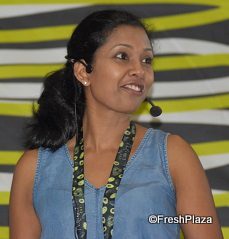 La professoressa Neena Mitter (a destra) della Queensland Alliance for Agriculture and Food Innovation (QAAFI) presso l'Università australiana del Queensland, ha detto ai delegati che il genoma dell'avocado non è ancora completamente sequenziato, il che significa che gli scienziati non conoscono ancora la funzione di ciascuna coppia di geni.