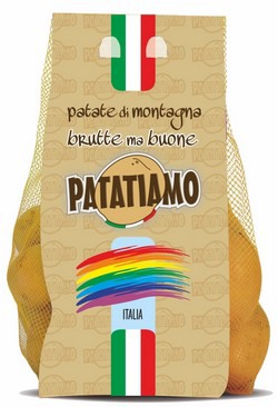 Le patate di montagna della linea "brutte ma buone" saranno confezionate in un vertbag a marchio Patatiamo da 3 kg. Saranno vendute a un prezzo più basso, che faccia almeno recuperare i costi di imballaggio e trasporto.