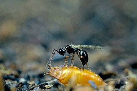 Parassitizzazione di Trichopria drosophilae su pupa di Drosophila s.