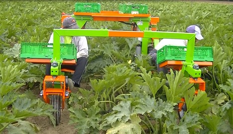 Si tratta di un macchinario progettato per la raccolta di zucchine, peperoni e pomodori, tra le altre colture. "E' possibile operare con due postazioni di raccolta laterali oppure con una postazione centrale, a seconda delle esigenze di raccolta", continua Zanarini.