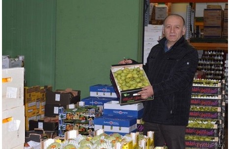 Il titolare dell'azienda My Fresh Fruit Yesil LLC, Satılmış Koymatlı, durante una visita di Freshplaza nel 2017.