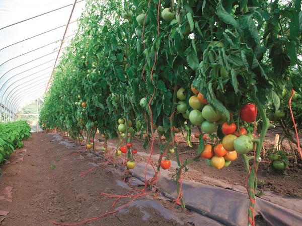 Carta utilizzata nella coltivazione protetta di pomodori - diventa quasi nera, a causa del processo di irrigazione.