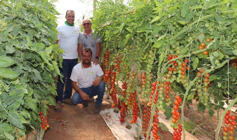 Ciringuito sta riscontrando sempre maggiore successo tra i produttori siciliani, i più esperti in materia di pomodoro ciliegino. Lo testimoniano i volti allegri di Ignazio Modica e Rosario Boscarino (rispettivamente a sinistra e in basso nella foto qui sotto), co-titolari dell'azienda Agricorvo di Scicli (RG). "Abbiamo iniziato a lavorare con Agricorvo quest'anno – afferma Uccio Buscema, tecnico commerciale Meridiem Seeds (a destra nella foto) – e ci siamo subito capiti. Sono produttori navigati, che hanno saputo riconoscere e sfruttare appieno le potenzialità di Ciringuito, ci stanno rendendo fieri!"
