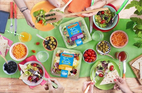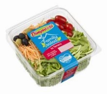 Le Family Salad, infatti, oltre a essere gustate come un contorno già pronto, più completo, però, di una semplice insalata, sono la base perfetta per un'insalatona da arricchire ulteriormente a piacere e con fantasia. A scaffale dal 14 luglio, la nuova linea è composta da un letto di insalate (lattughino, mista tenera o mista croccante) arricchito da ingredienti vegetali (pomodorini datterini, olive denocciolate e carote julienne) in diversi formati (vaschette da 250 g e da 370 g a seconda della tipologie di insalata) che corrispondono a 3/4 porzioni.