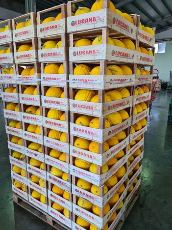 "Altra referenza di punta in questo periodo sono i meloni gialletti, che si movimentano più rapidamente rispetto alle angurie e ai meloni tradizionali. Trattasi di nostre produzioni che si estendono su oltre 12 ettari, le quali vengono solitamente commercializzate fino a settembre inoltrato. I prezzi non sono poi tanto eccessivi, ma i frequenti e abbondanti ordinativi ci permettono di compensare quel lieve calo delle quotazioni. Presentiamo i nostri gialletti in due diversi formati: cassette da 12 kg (6 gialletti per cassetta) o bins per chi ci richiede maggiori quantitativi".
