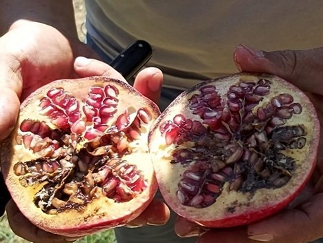 Tutto ciò mentre in questi giorni ha avuto inizio la raccolta della varietà Acco, i cui frutti hanno già raggiunto i 16° Brix e un'uniforme colorazione rossa sia all'interno che all'esterno. Il sapore è molto dolce e poco acido (fig.5). Successivamente, sarà il turno delle cultivar Parfianka, Valenciana (fig.6), Mollar de Elche, Wonderful (fig.7), per concludere con la Primosole (fig.8).