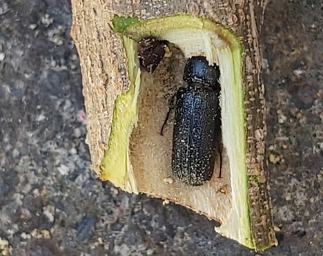 "Tra le altre fitopatie - dice l'esperto - abbiamo riscontrato l'Apate Monachus (figg.10.1 e 10.2 ), un Coleottero Bostrichide che scava gallerie, le quali possono portare anche alla rottura dei rami, su piante di olivo, agrumi, mandorlo, vite e, per quanto abbiamo riscontrato, anche su melograno".
