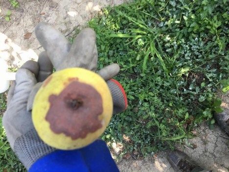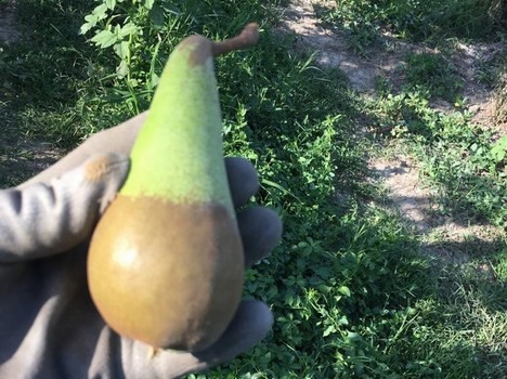 "Parliamo di quel cerchio rugginoso all'esterno del frutto provocato dagli improvvisi cali termici primaverili, che ne modifica l'aspetto esteriore, lasciandone intatta la polpa e il sapore. Se le varietà estive sono state in parte risparmiate dal problema, l'Abate è stata, invece, pesantemente colpita, tanto che nei nostri frutteti parliamo di una percentuale che va dal 15 a oltre il 30%".