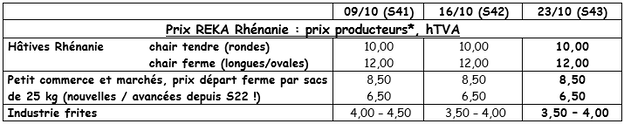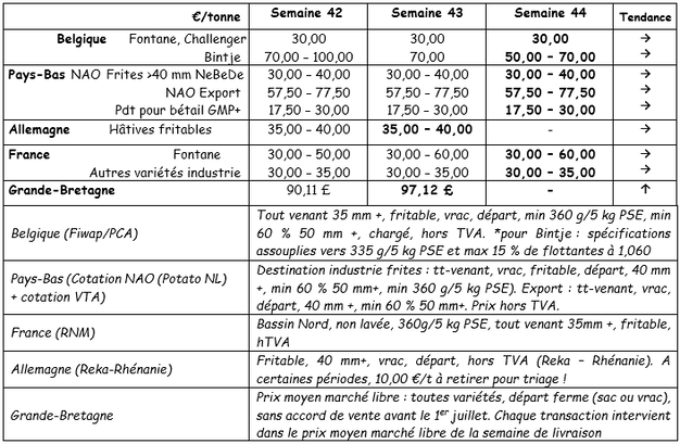La raccolta di varietà per il mercato del fresco è quasi terminata, ma il settore risente dell'incertezza legata al coronavirus. La cosiddetta seconda ondata della pandemia stimolerà gli acquisti di patate o ci sarà un calo a seguito della chiusura del canale Horeca? In ogni caso, i consumi a settembre non sono stati buoni, con un "aumento" di appena lo 0,2% rispetto a settembre 2019. Si segnala inoltre che i problemi di qualità già segnalati non fanno che peggiorare, ampliando così il divario tra il raccolto lordo e quello netto pagato. Sul mercato da industria, il raccolto si sta sviluppando più o meno rapidamente a seconda dell'area, del tipo di terreno e della quantità di pioggia.