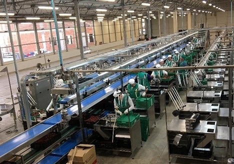 Nella foto sopra: la linea di lavorazione che, a pieno regime, occupa fino a 56 addetti, impiegati solamente per il 20% dei volumi commercializzati dall'azienda. (NB: immagine realizzata prima dell'emergenza Covid).