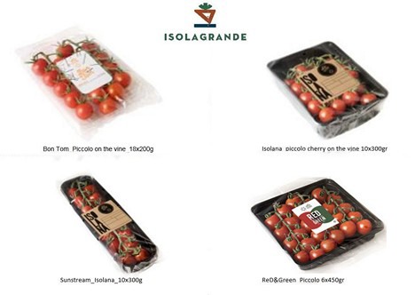 I più recenti investimenti in marketing "hanno consentito a Isolagrande di poter inserire nella commercializzazione dell'OP, un 20% di propri prodotti, identificando la propria produzione presso il consumatore, tramite tre marchi aziendali: Bon Tom (categoria extra), Isolana (categoria premium) e Red Green (categoria standard). Tuttavia, l'80% va a marchio dei supermercati. Il motivo è spiegato dalla scelta che le catene di supermercati all'estero (ma anche in Italia) preferiscono attribuire ai prodotti un proprio marchio, specialmente per l'alta gamma".