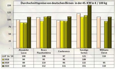 Le pere italiane sembra abbiano dominato i mercati ortofrutticoli all'ingrosso tedeschi: le Abate Fetel sono state le più apprezzate dai clienti, mentre la Santa Maria è risultata di scarso interesse a livello locale. Si sono aggiunte anche le Williams Christ dall'Italia. A Francoforte sono riapparse le Red Bartlett, dopo una pausa, ma sono risultate troppo costose per la trasformazione. Dalla Turchia sono arrivate principalmente pere Santa Maria e, più raramente, Deveci.