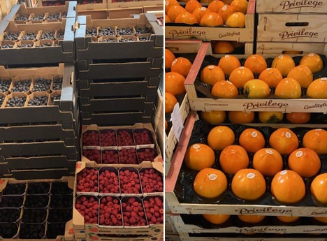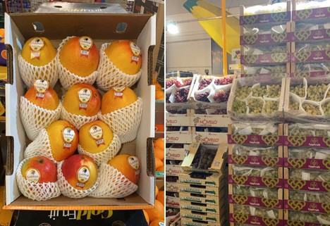 Frutta tropicale colorata e uva da tavola nell’attuale reparto merci in entrata.