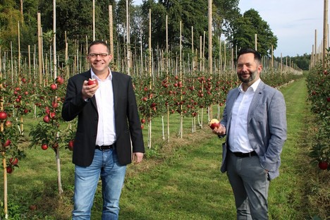 Raphael Janitschek, direttore agli acquisti di frutta e verdura per Edeka Südwest (a sinistra) e Stefan Heinzmann, direttore del dipartimento ortofrutta per Edeka Südwest garantiscono l'eccellente sapore della varietà in assortimento.