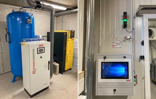 A sinistra: generatori di azoto. A destra: touch panel (immagini fornite da Isolcell)