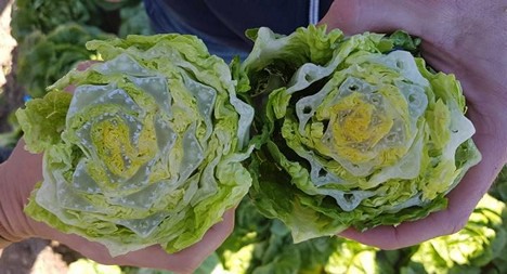 A sinistra, lattuga a progetto Solidrib con coste piene, a confronto (a destra) con una varietà standard di mercato.